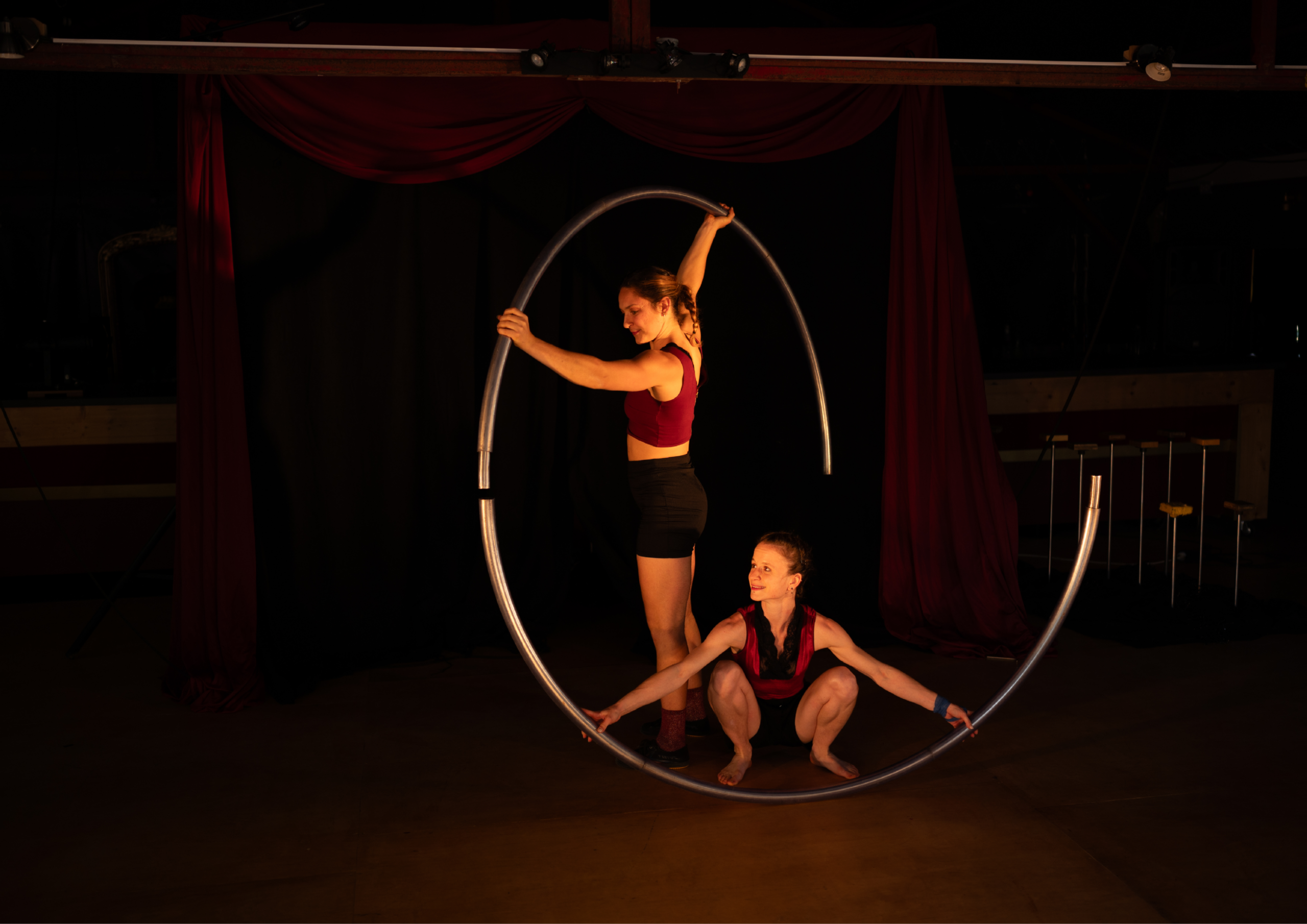 Au cœur de cette création, la face cachée du cirque devient centrale : préparatifs, montages, déplacements, organisation, attentes, essais et erreurs. Tout ce qui précède et entoure la piste devient source de jeu, de récit et de poésie.